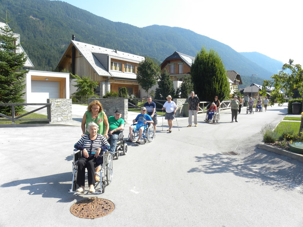 Ker našo vas počasi zapušča poletje, smo se odločili, da se s stanovalci in prostovoljci odpravimo do bližnje slaščičarne, ki se nahaja v centru Kranjske Gore. Pisana družba je bila precej zgovorna in dobre volje. Sprememba okolja in telesna aktivnost sta nas poživili. Število stanovalcev, ki se je sprehoda udeležilo, je pokazatelj, da se v našem Domu dobro zavedamo, da je telesna aktivnost zelo pomembna za ohranitev zdravja in psihofizičnih sposobnosti.