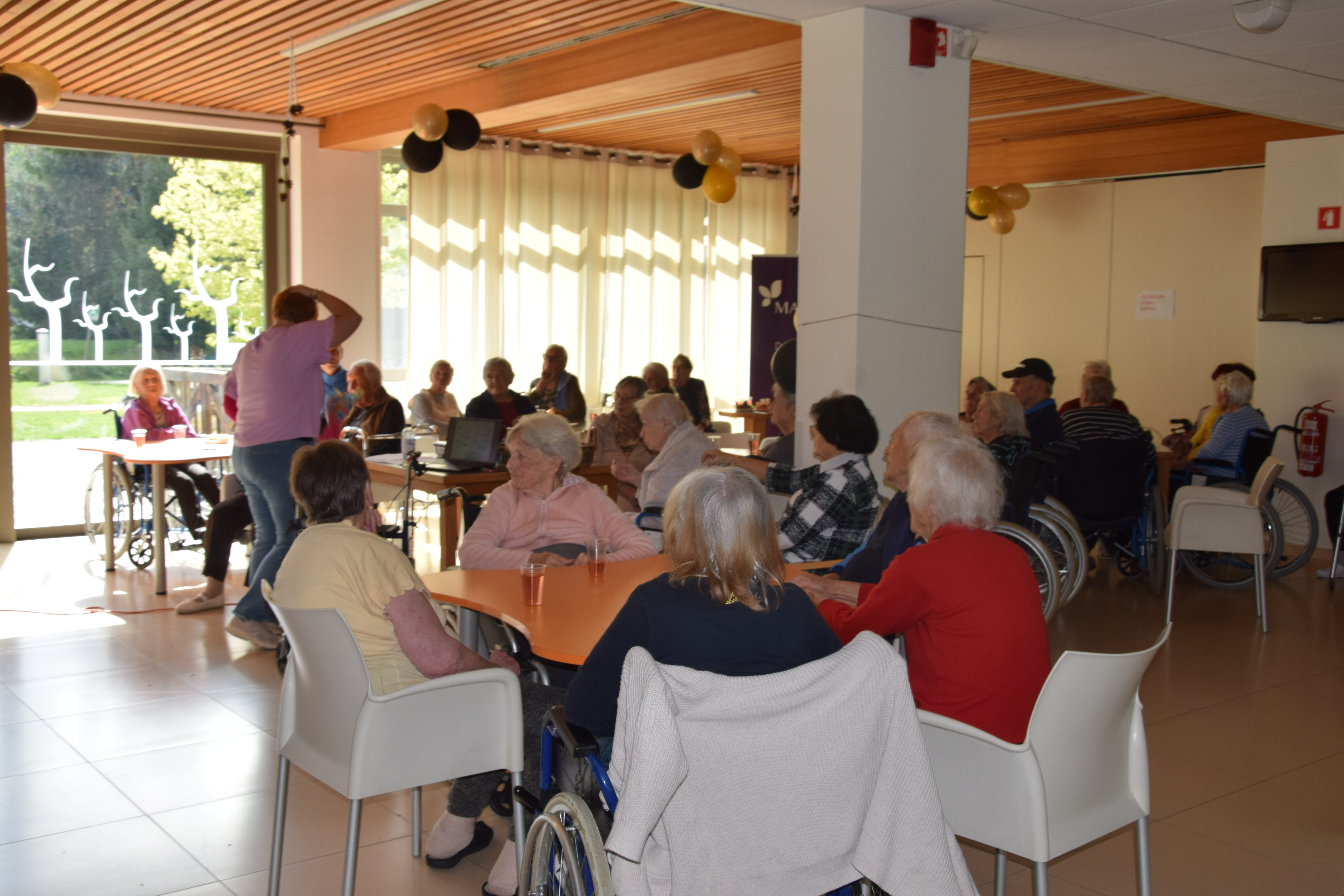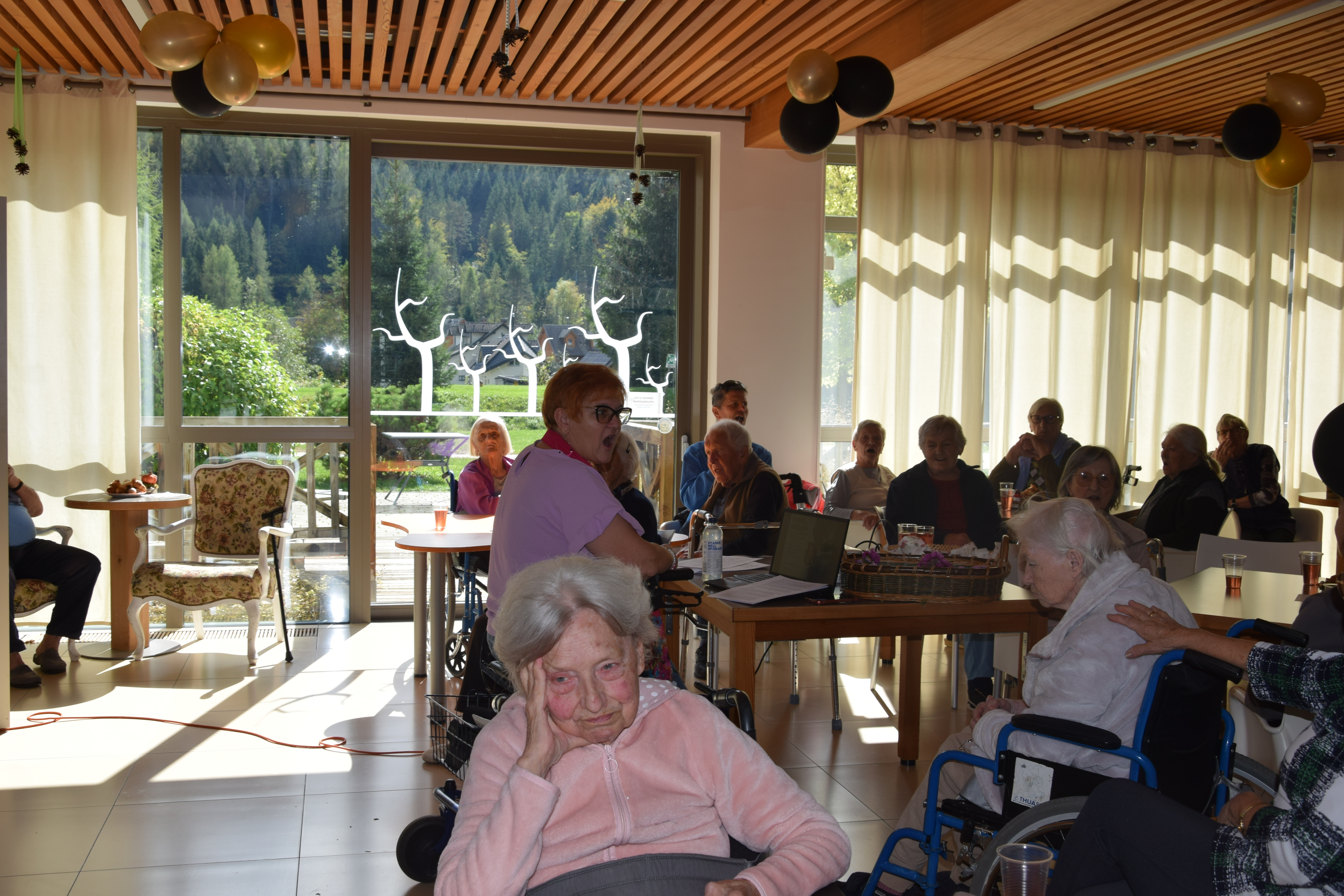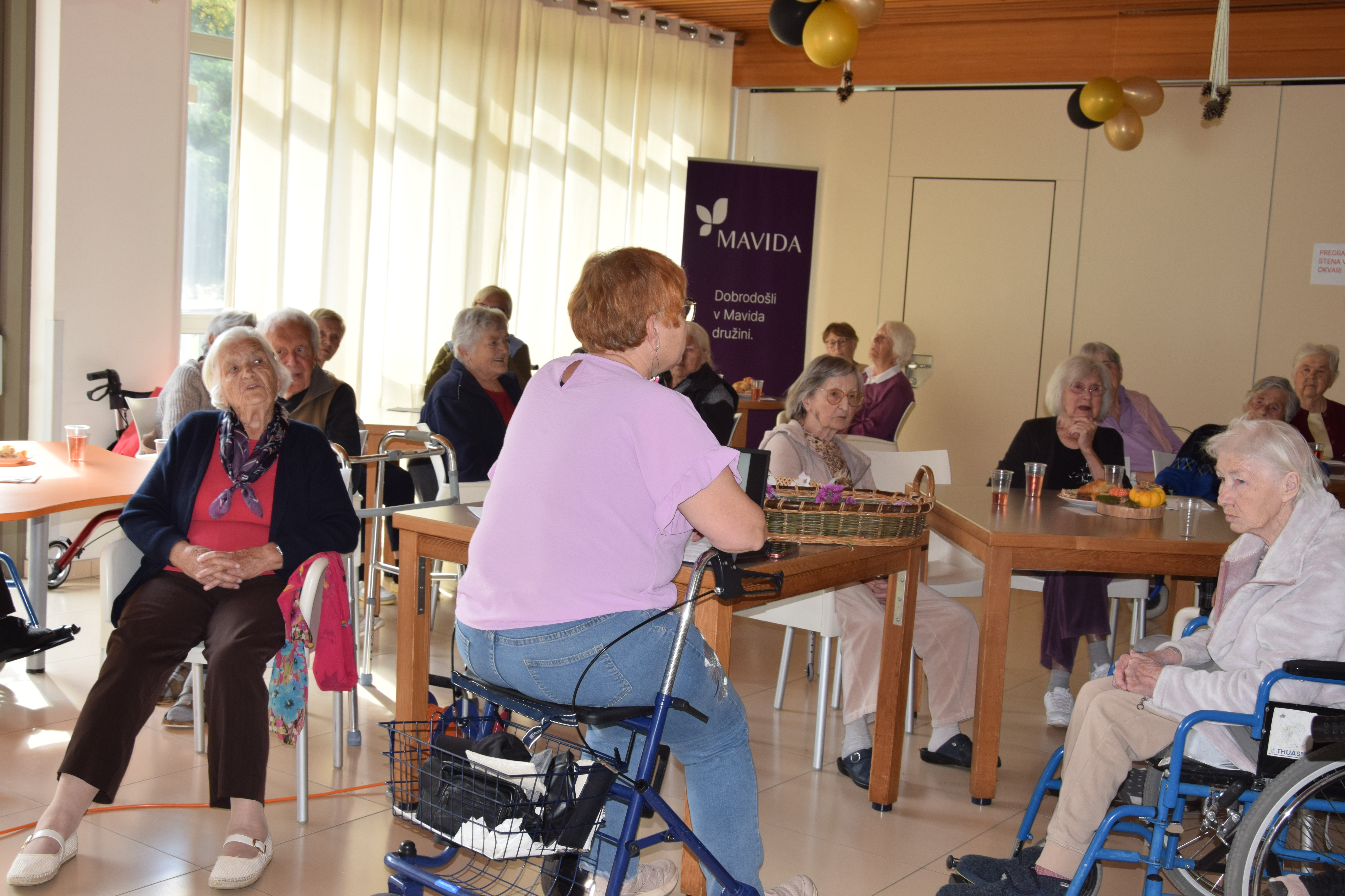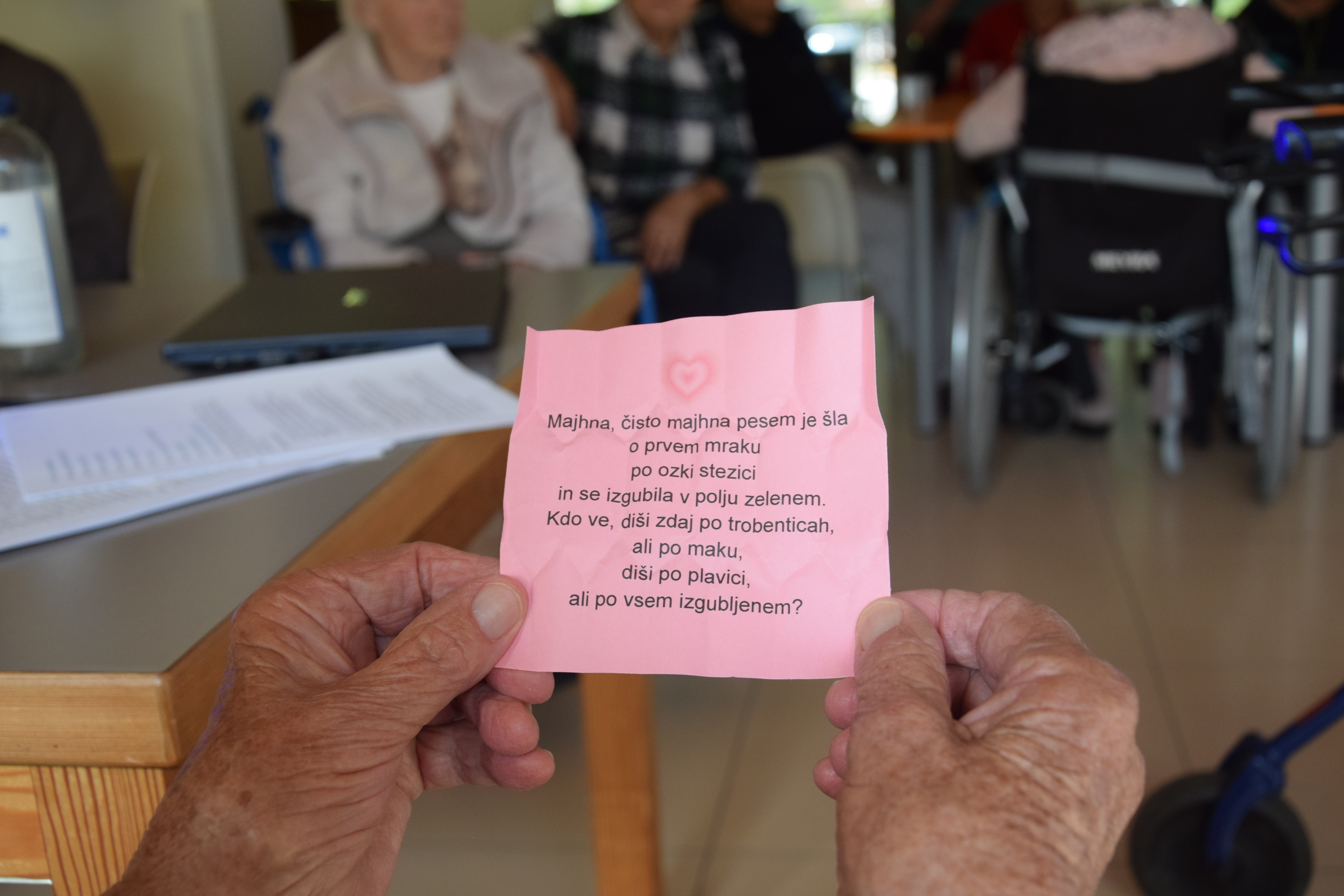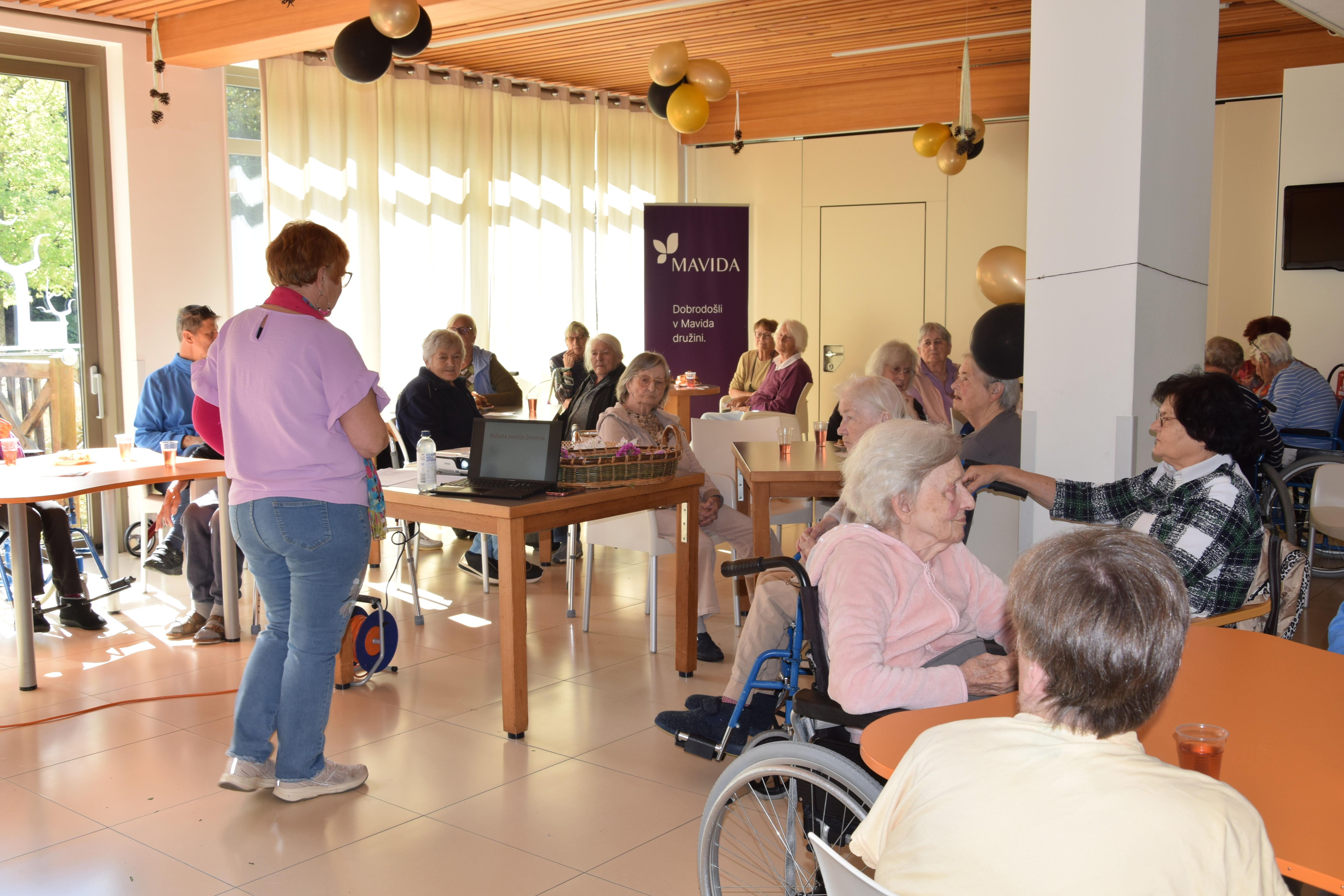 Ob mednarodnem dnevu starejših smo se, kot dom poklonili stanovalcem z lepimi mislimi nato pa smo sredino popoldne nadaljevali z predavanjem ga. Alenke Mirtič Dolenc, ki je za temo izbrala Rožnato poezijo. Predavanje je spremenila v diskusijo s stanovalci, deklamirali so različne pesmi Franceta Prešerna, Simona Jenka in Toneta Pavčka. Nekaj pesmi smo skupaj tudi zapeli. Stanovalci so bili nad aktivnim nastopom ga. Alenke zelo zadovoljni, na koncu pa jih je še pogostila z kavico in indijančki. Dogovorili smo se, da se bomo bolj pogosto srečevali na podobnih in še lepših dogodkih.