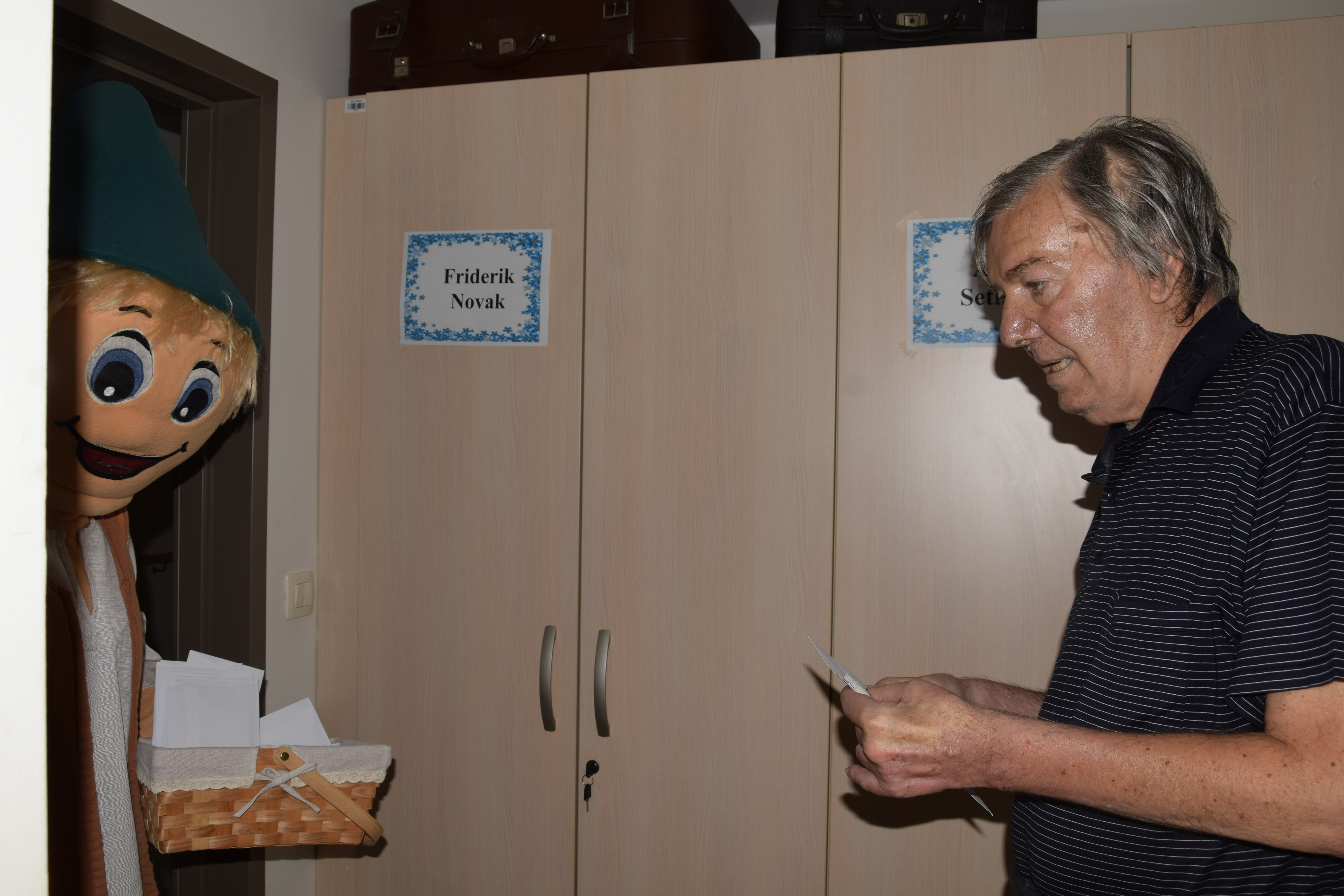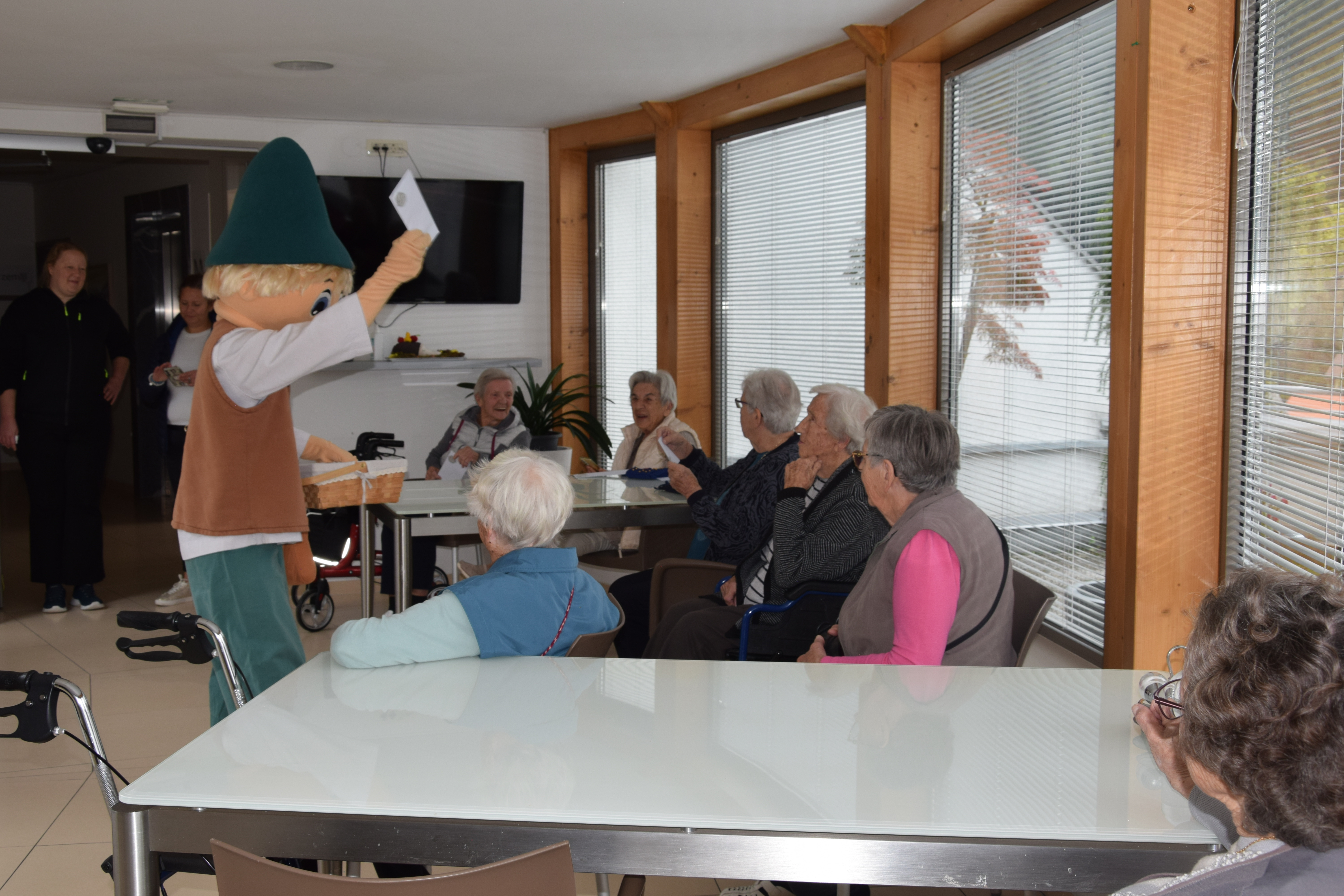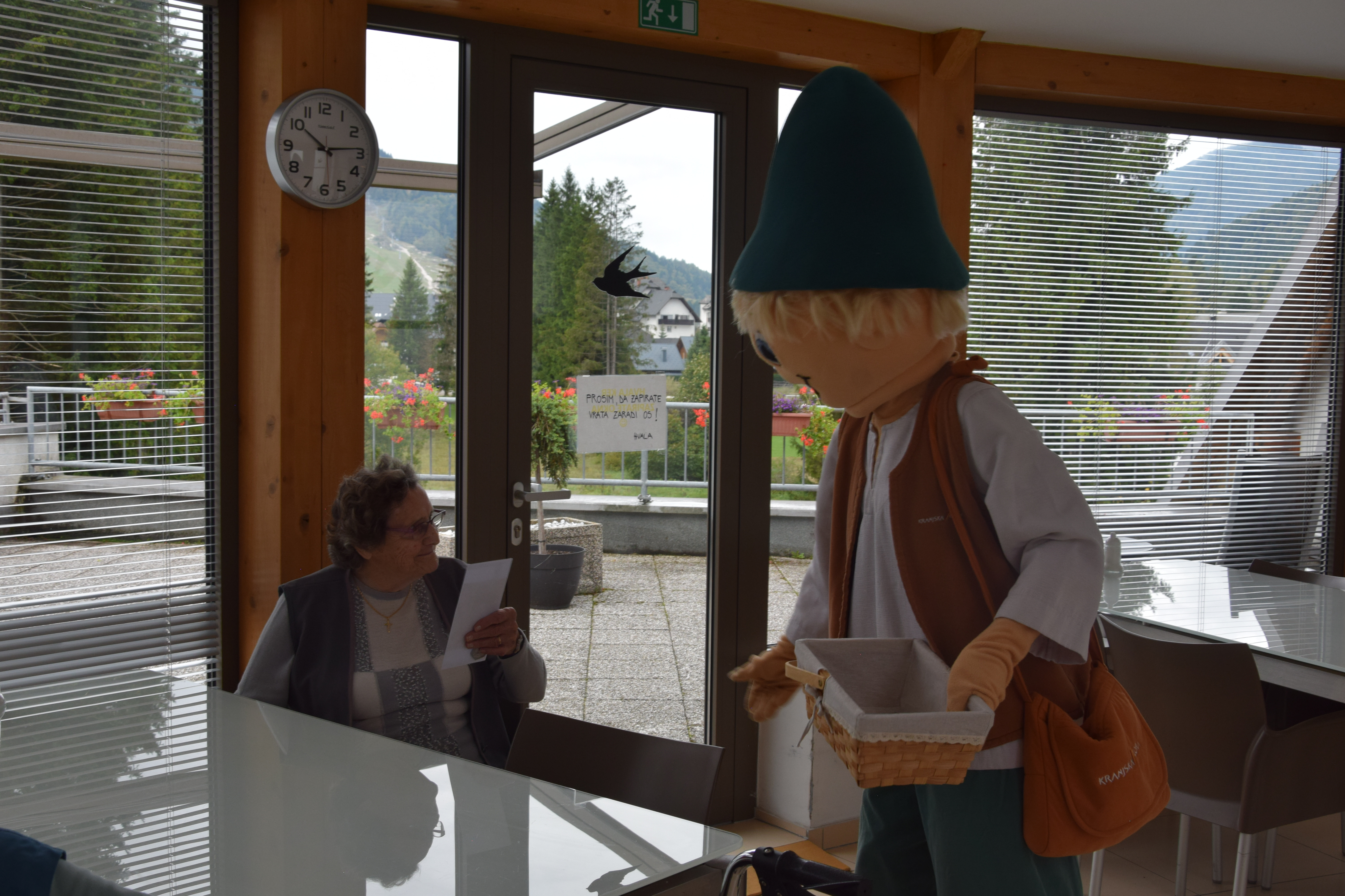 Ura je odbila devet in nekaj, ko nas je s svojim prihodom razveselil Kekec. Sprehodil se je po avli in pozdravil stanovalce, ki so pili kavico. Nato smo se skupaj odpravili presenetiti stanovalce po skupinah, nekateri so že sumili, da se nekaj dogaja, drugi so z navdušenjem in nasmehom pozdravili Kekca, ki jim je prinesel pisma otrok, ki so letos počitnice preživljali v Hit Alpinea Kranjska Gora. Kuverte so krasili ˝pečati˝, ki so jih otroci izdelali sami. V njih so semena, ki jih bodo stanovalci posadili v lončke in iz njih bodo zrasle cvetlice. Hvala za obisk in kmalu nasvidenje!
