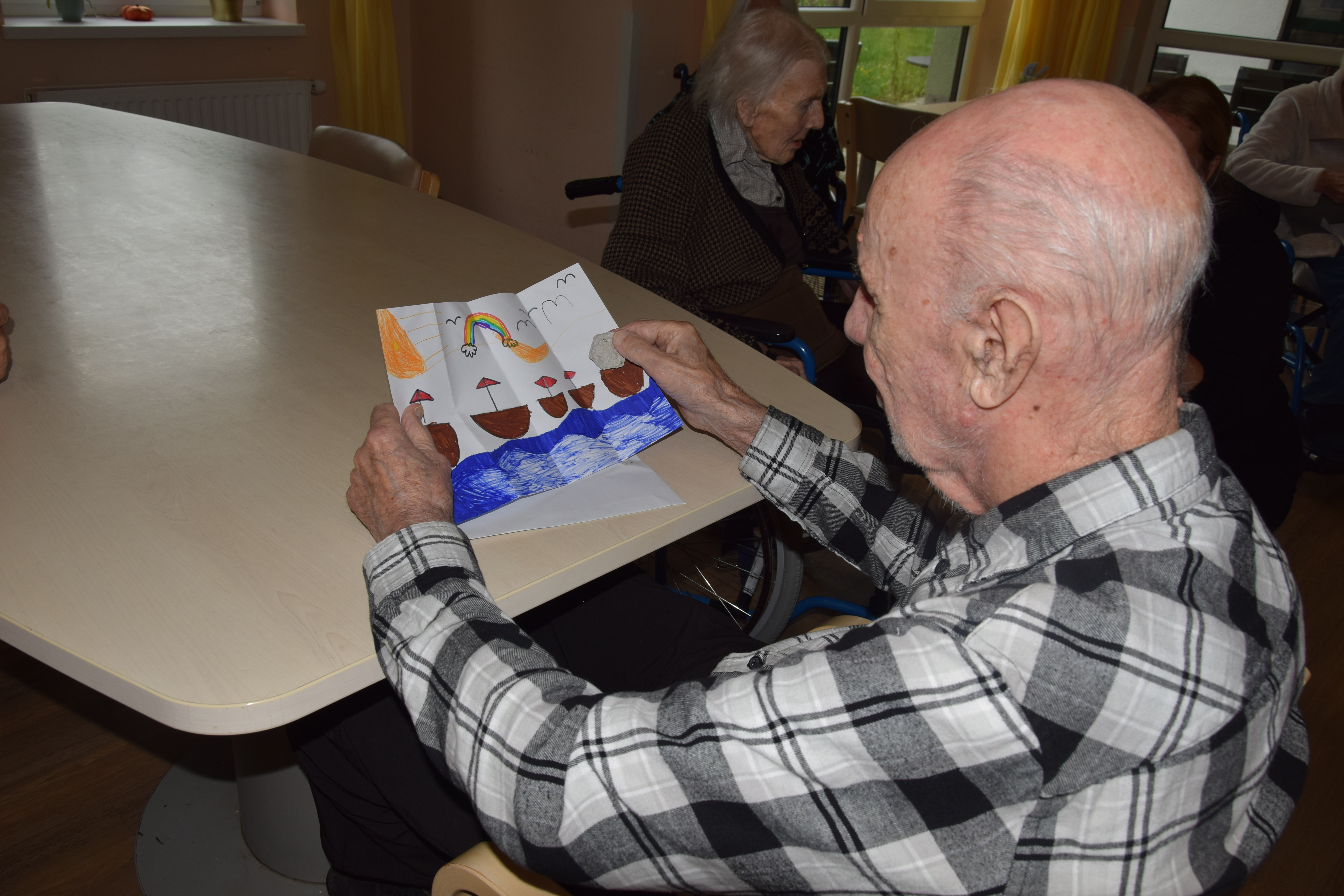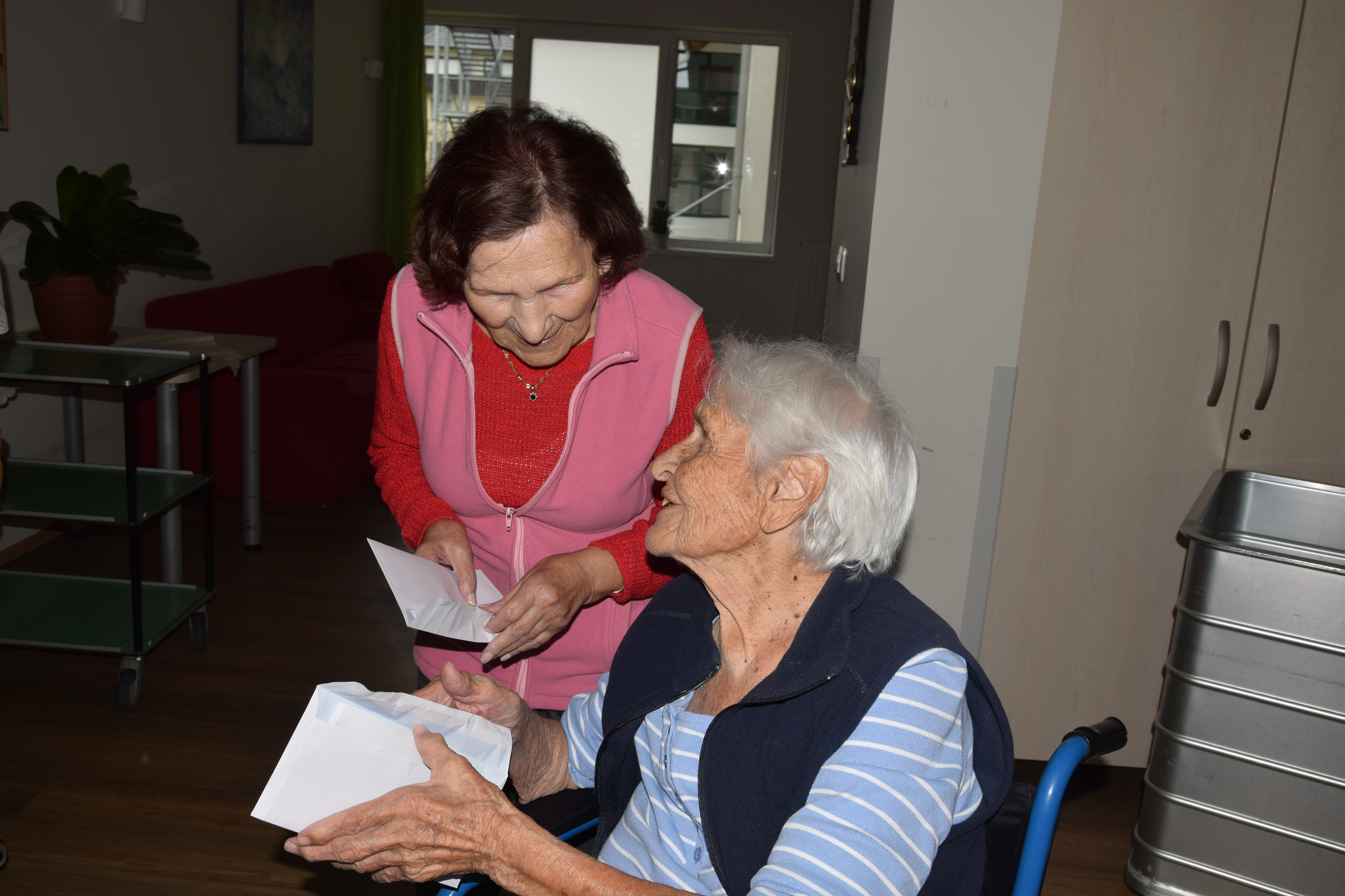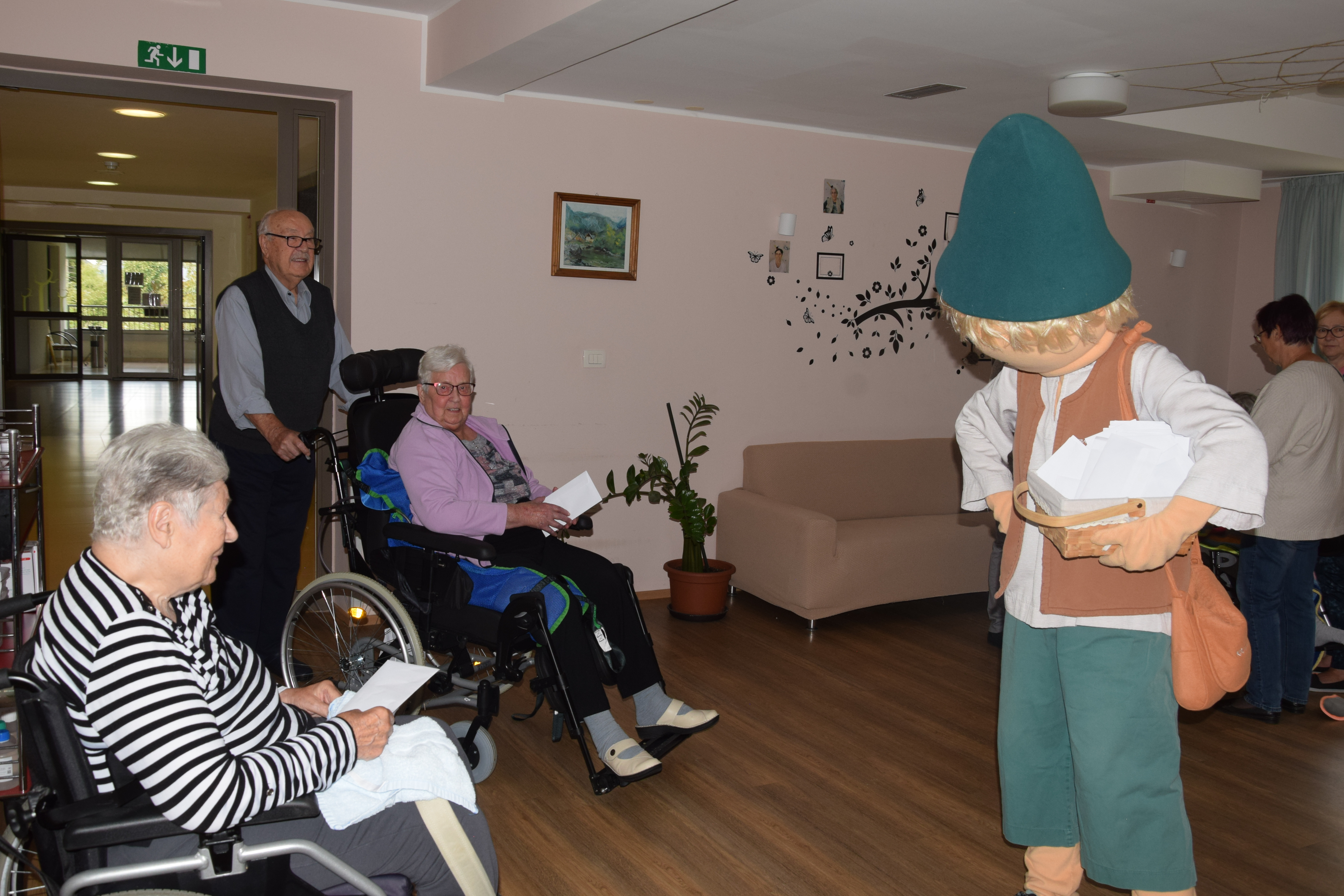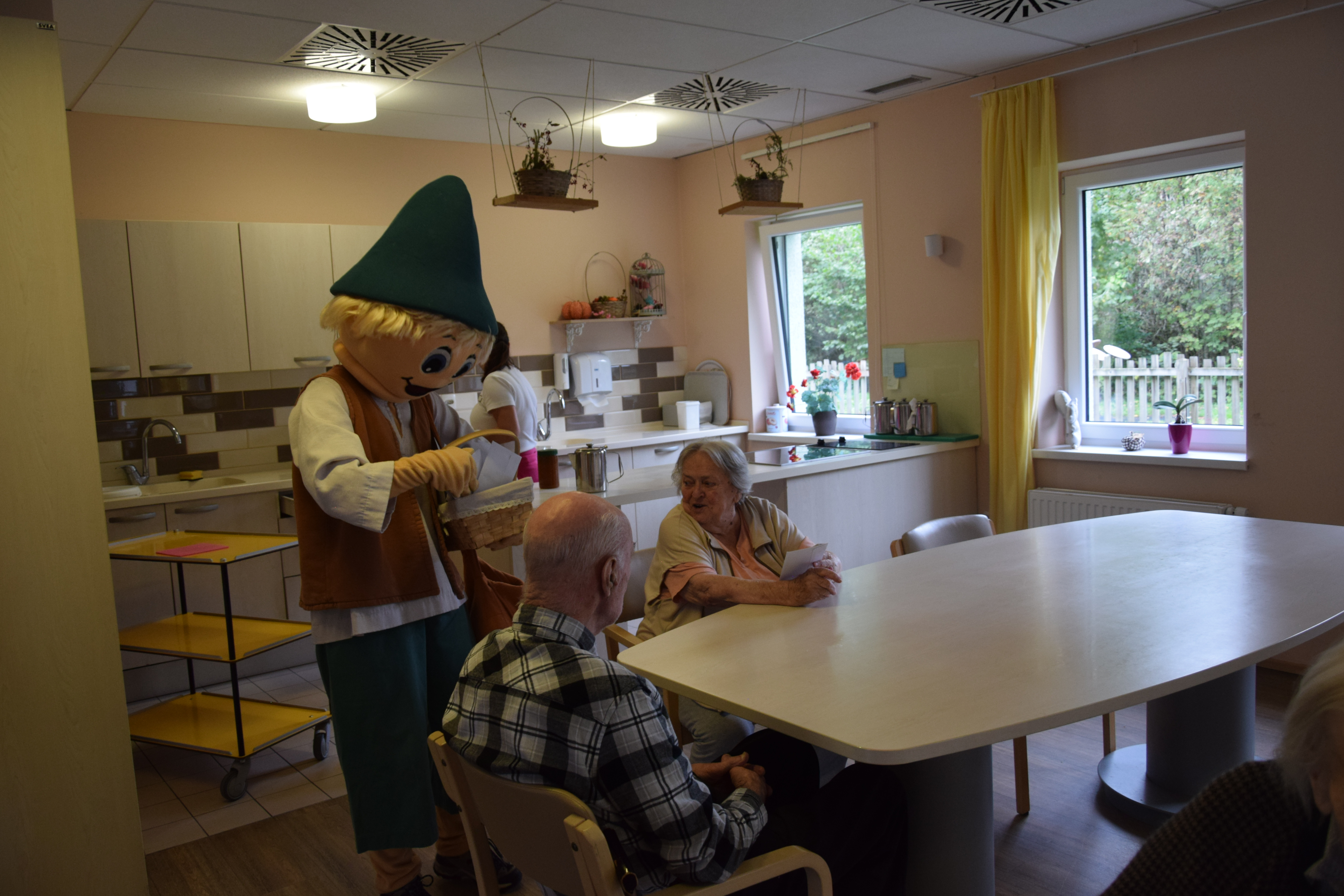 Ura je odbila devet in nekaj, ko nas je s svojim prihodom razveselil Kekec. Sprehodil se je po avli in pozdravil stanovalce, ki so pili kavico. Nato smo se skupaj odpravili presenetiti stanovalce po skupinah, nekateri so že sumili, da se nekaj dogaja, drugi so z navdušenjem in nasmehom pozdravili Kekca, ki jim je prinesel pisma otrok, ki so letos počitnice preživljali v Hit Alpinea Kranjska Gora. Kuverte so krasili ˝pečati˝, ki so jih otroci izdelali sami. V njih so semena, ki jih bodo stanovalci posadili v lončke in iz njih bodo zrasle cvetlice. Hvala za obisk in kmalu nasvidenje!