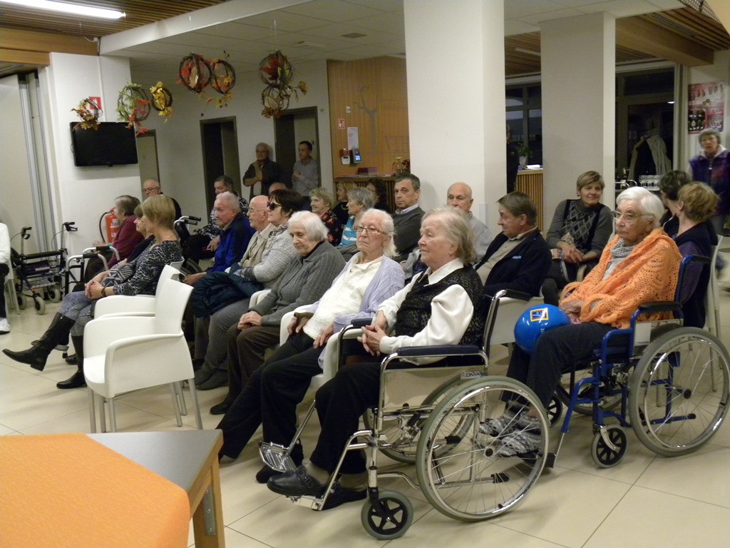 Na odprtje razstave je prišlo tudi veliko svojcev. Z zvoki citer nas je ves čas spremljala gospa Jerca Kramar. Stanovalci so se počutili zelo pomembne, saj so bili ravno oni s svojimi zgodbami v središču pozornosti. Gospod Zdravko, nekoč aktiven golfist, si je močno želel fotografijo, na kateri je zopet držal golf palico. Povedal je, da ga je bilo sprva strah. Ni vedel, ali bo zmogel še enkrat narediti obrat in zamah, ne da bi izgubil ravnotežje. Strah je bil odveč, saj se je gospod Zdravko brez težav povzpel na golf igrišče in naredil nekaj popolnih zasukov in zamahov. Fotografija pa je popolna. Prepričani smo, da bo odslej krasila steno njegove sobe.