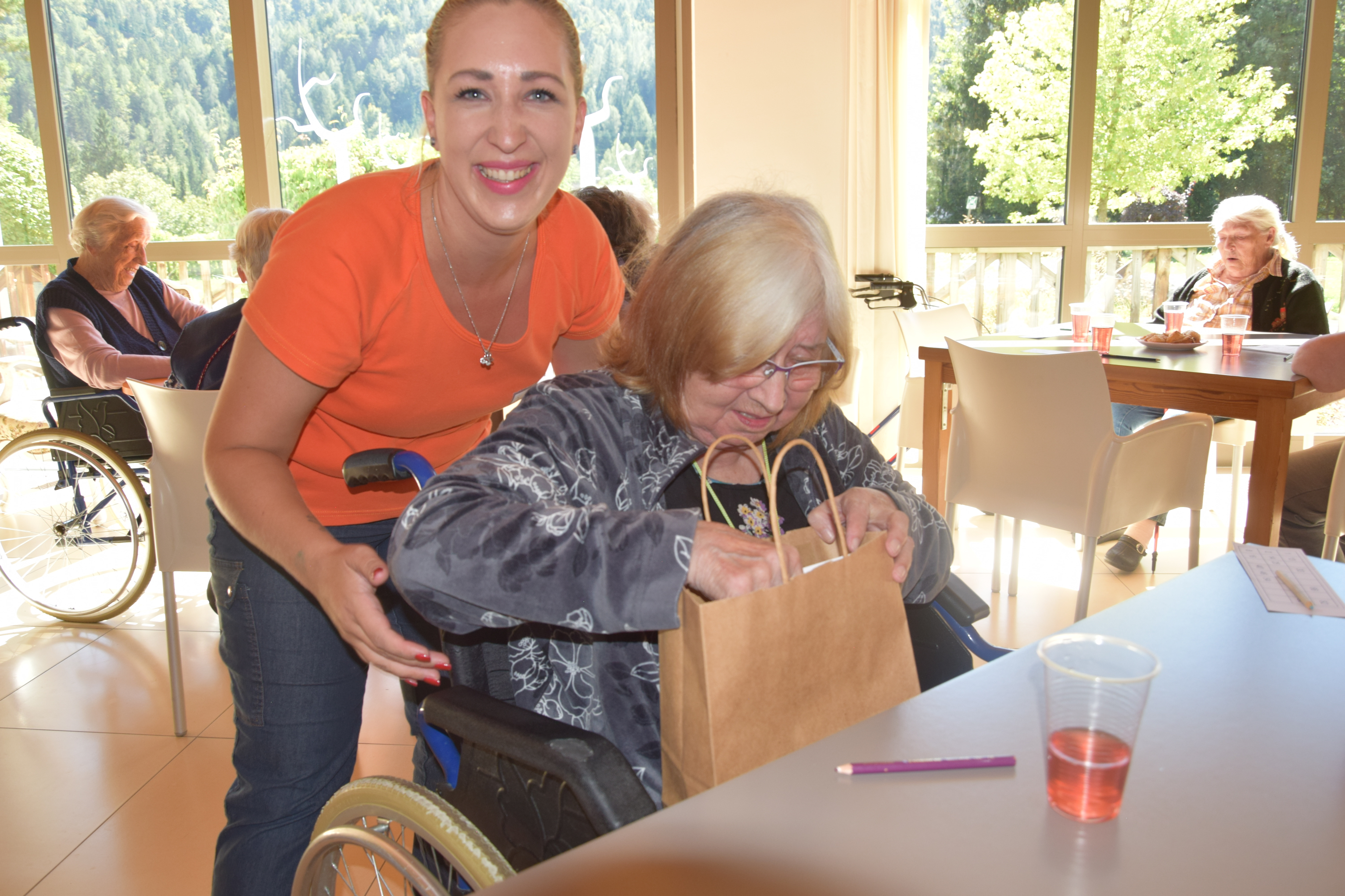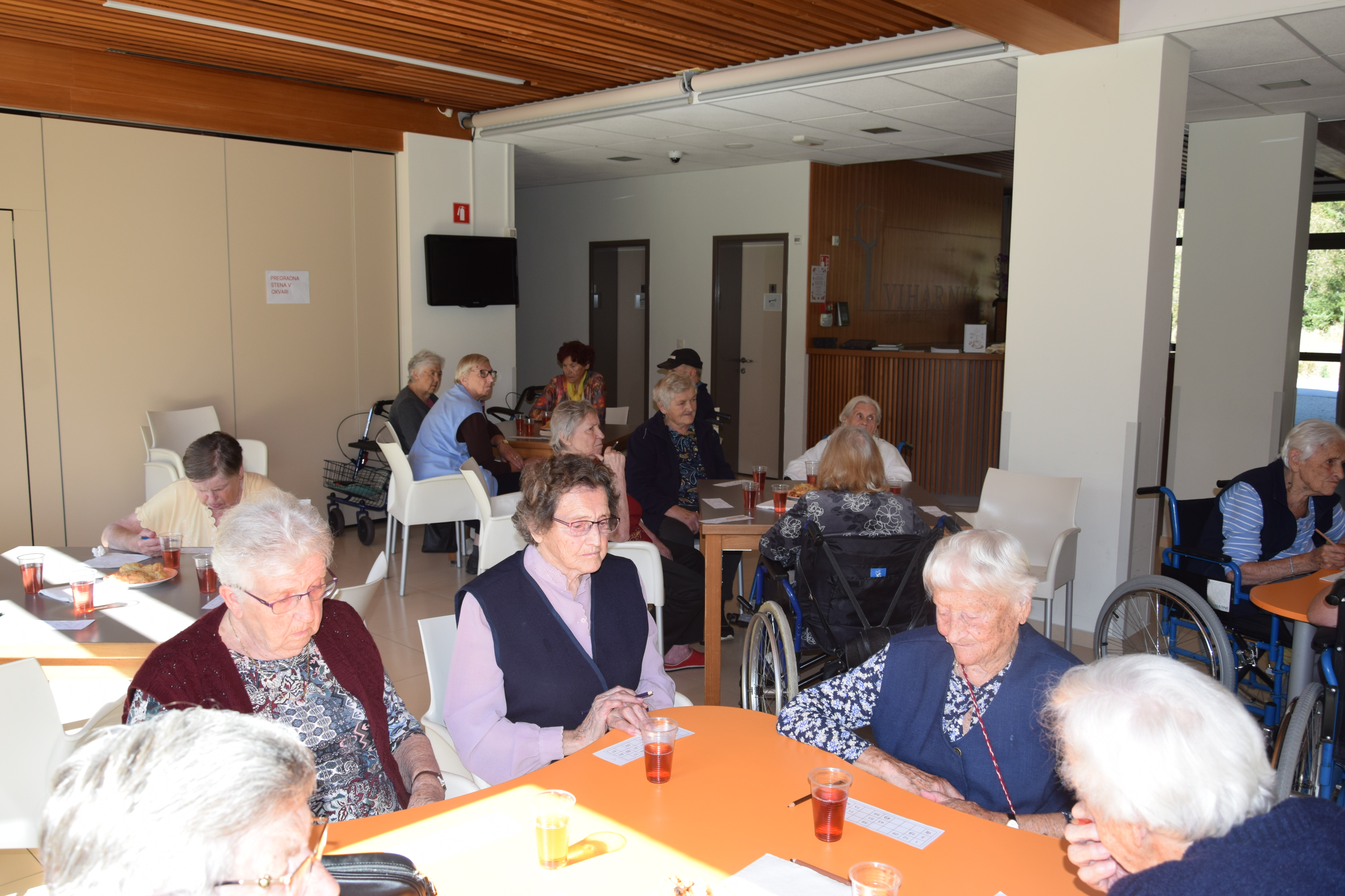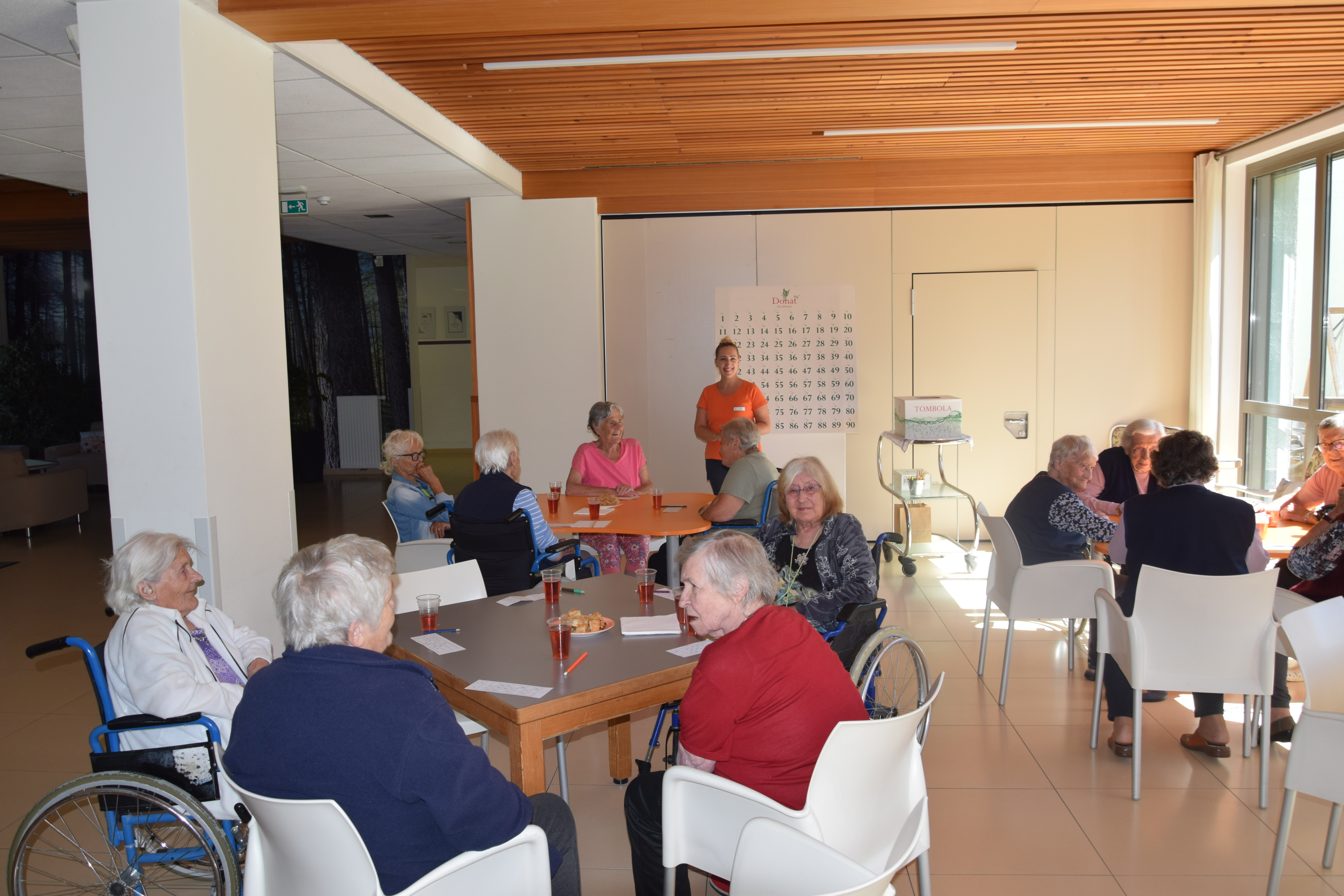 Po kosilu je čas za tombolo, stanovalci pozorno spremljajo vsak gib naše voditeljice, da bi prvi obkrožili pravilno številko in zaklicali: Tombola. Nagrade so mamljive, zato je boj vedno oster. Med pavzo in po končani igri je vedno še nekaj časa za klepet in sladkanje. Današnja zmagovalca sta bila ga. Metka in g. Joža. Čestitke obema, ostalim pa več sreče prihodnji mesec.